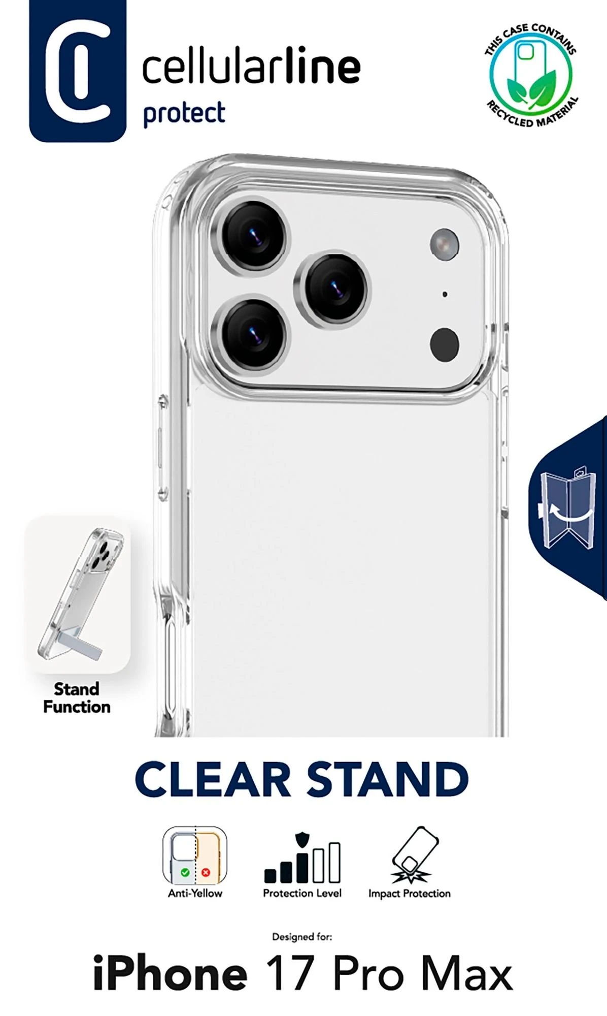 Cellularline Clear Stand Case für Apple iPhone 17 Pro Max Transparent