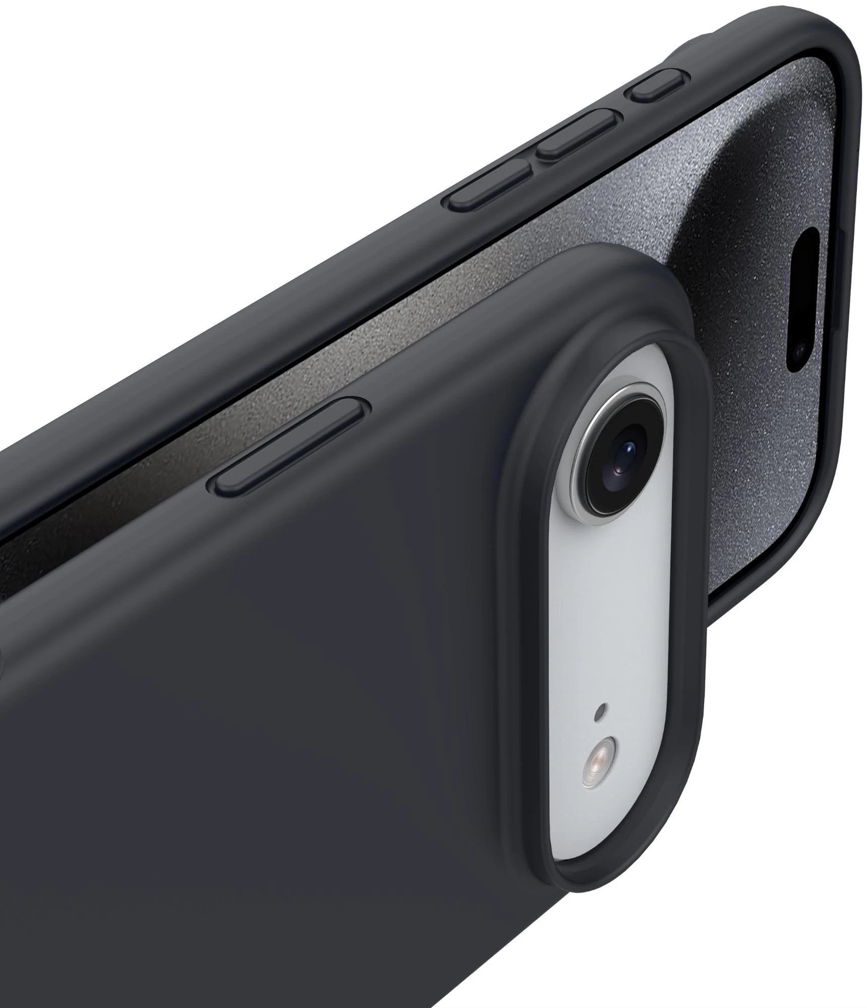 Die Anschlüsse, Knöpfe und Kamera bleiben voll zugänglich.